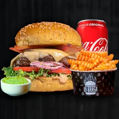 1 La brasa: Pão brioche, molho barbacue, burger de fraldinha 200g, fatias de queijo prato + batata + bebida!