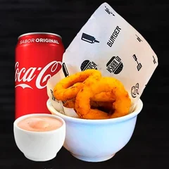 Pão de brioche, ketchup, burger de fraldinha 100g, queijo mussarela. + Batata smile + Refrigerante 220ml + Danoninho +